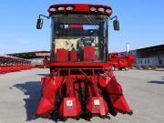 割台专利技术,采用新型对刀拉茎式摘穗箱及新型割台体,拉茎速度快,摘穗效果好; 专用扶持器,强制喂入,更加适合收倒伏玉米,收获效率高;