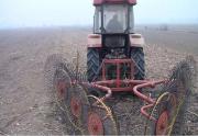 指盘搂草机系列,适合挂接在轮式拖拉机的三点悬挂装置上,工作部件为带搂齿的指盘,机器靠指盘按顺序传至后一个指盘,直到形成松散通风的草条为止